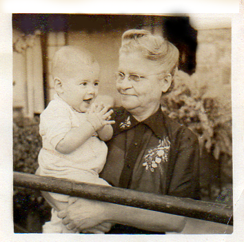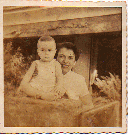 Foto do Ricardo Vilas Boas, filho do Norberto Vilas Boas e Terezinha Vilas Boas, no colo da tia avó Olga, na casa da Rua Cunha