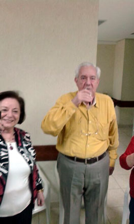 Foto do brinde da família no I Encontro Micélico em junho de 2015. Onde estavam presentes os descendentes de André Miceli, José de Castro Miceli, Francisco Rio Miceli (Francesco Natale Micieli - Tio Chiquinho).