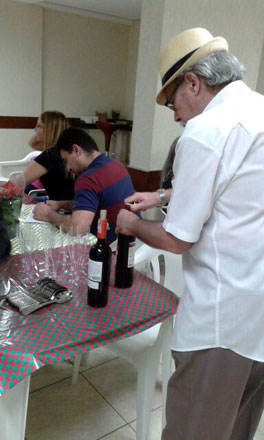 Foto onde estou (Everaldo) abrindo garrafas de vinho.