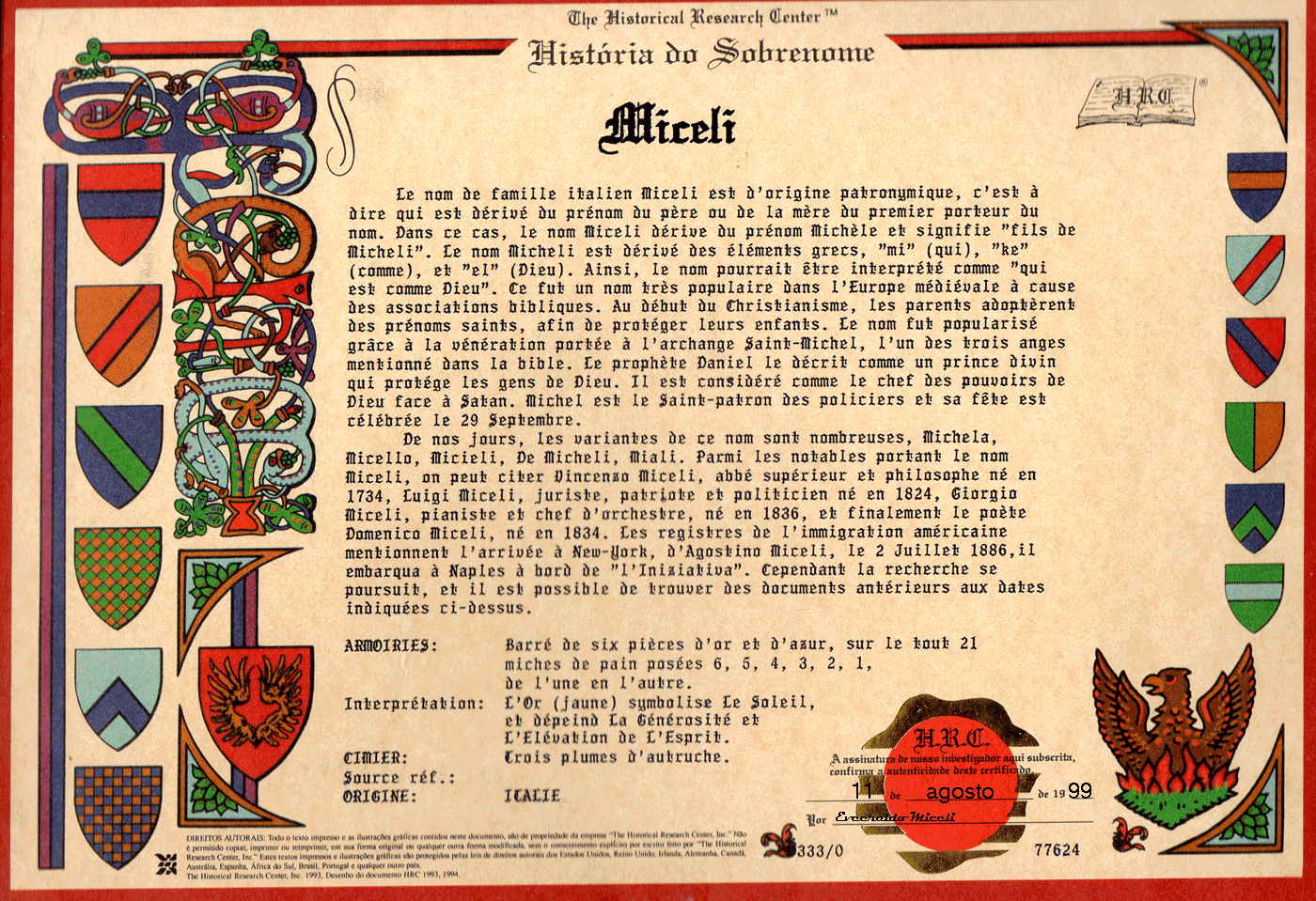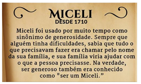 Histórico do nome MICELI conforme documento adquirido para mais informações sobre nosso sobrenome.
