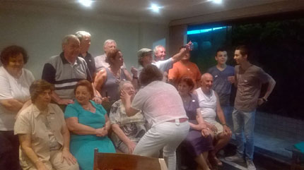 Todos falando sobre a familia Miceli. O evento foi feito para que a Sandra conhecesse uns familiares e rever outros.