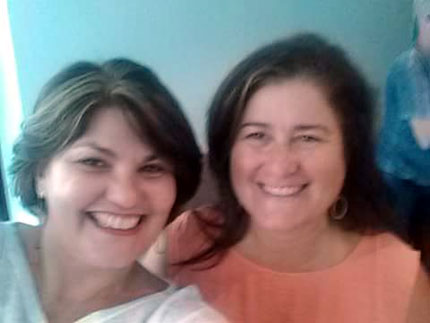 Foto de Ana Paula e Beatriz terminando seu almoço e falando sobre a família.