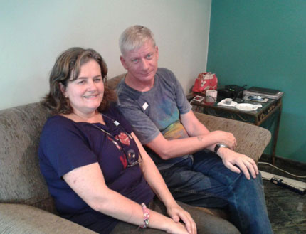 Beatriz e seu marido Helmut, sentados aguardando nossos parentes para o evento.