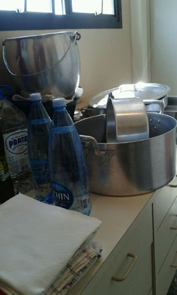 Foto das panelas para fazermos o talharim que foi feito para o almoço dos participantes.